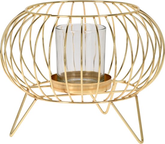 Mooie gouden kandelaar voor stompkaars op voet. 16 cm.